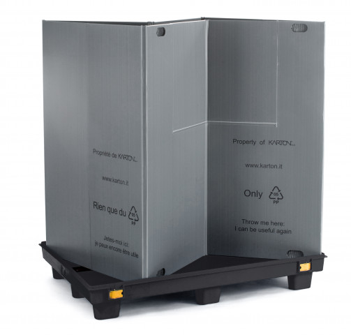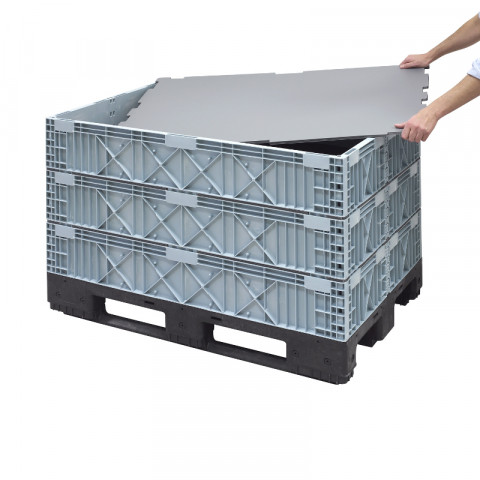 Box Mec BM1208: das smarte faltbare Palettensystem. Es hat die Größe einer Europalette, ist modular und kompatibel mit der Box Mec BM0806
