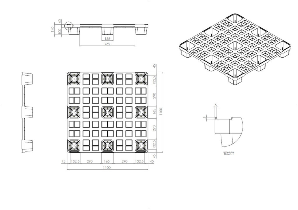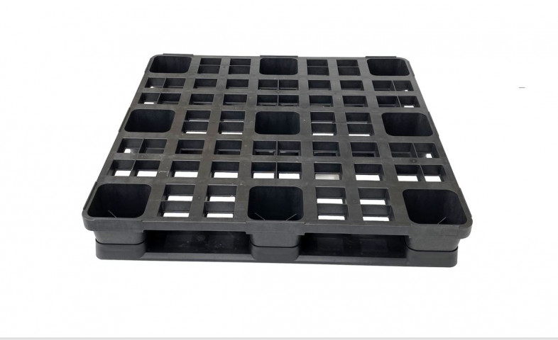 ST1100-Paletten sind stapelbar, haben 9 Beine und 4 Eingänge, sodass die Kompatibilität mit jedem Gabelstapler gewährleistet ist.